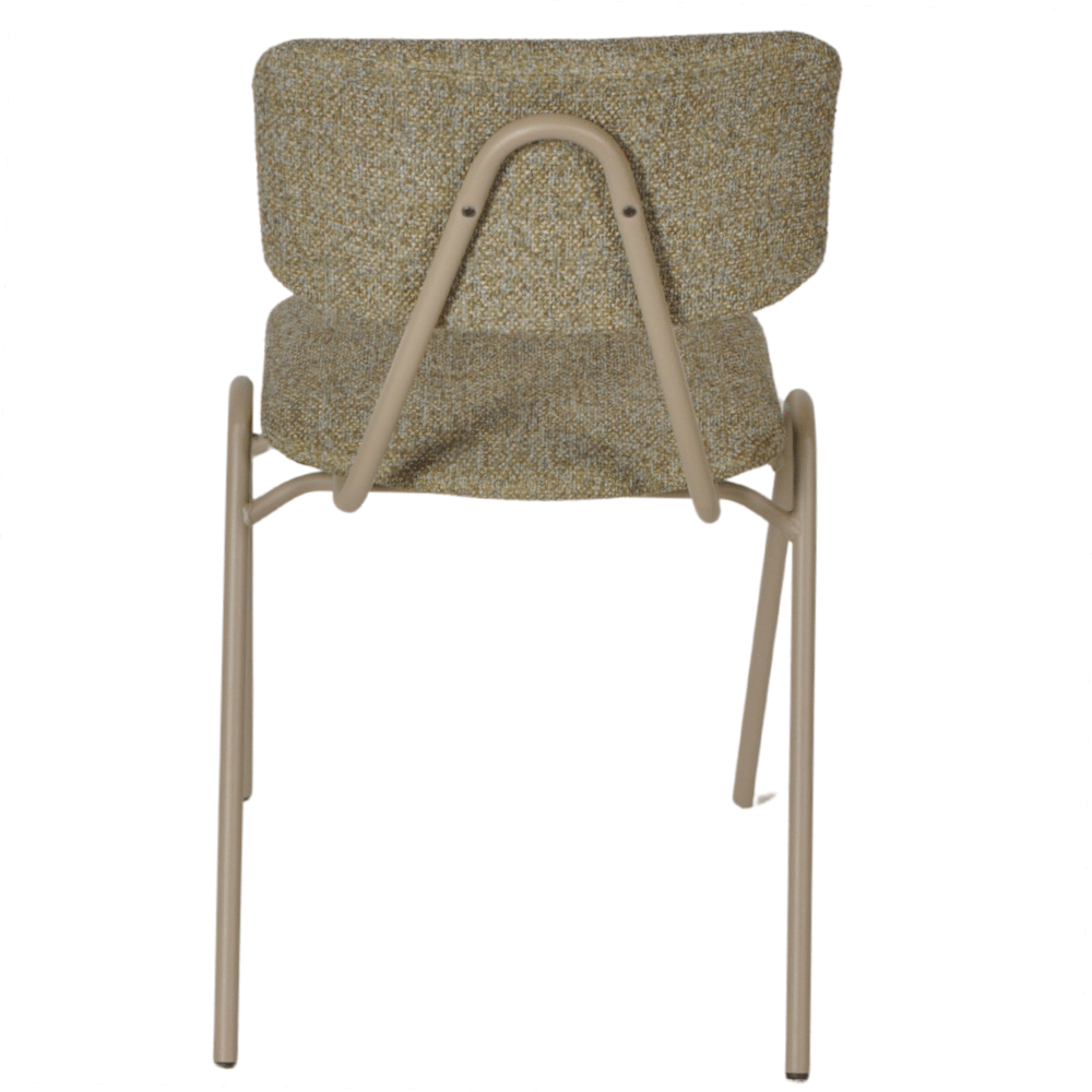 De stoel is stapelbaar en daarmee ruimtebesparend, ideaal voor flexibel gebruik in de horeca. Bovendien wordt hij duurzaam en lokaal geproduceerd in Nederland.